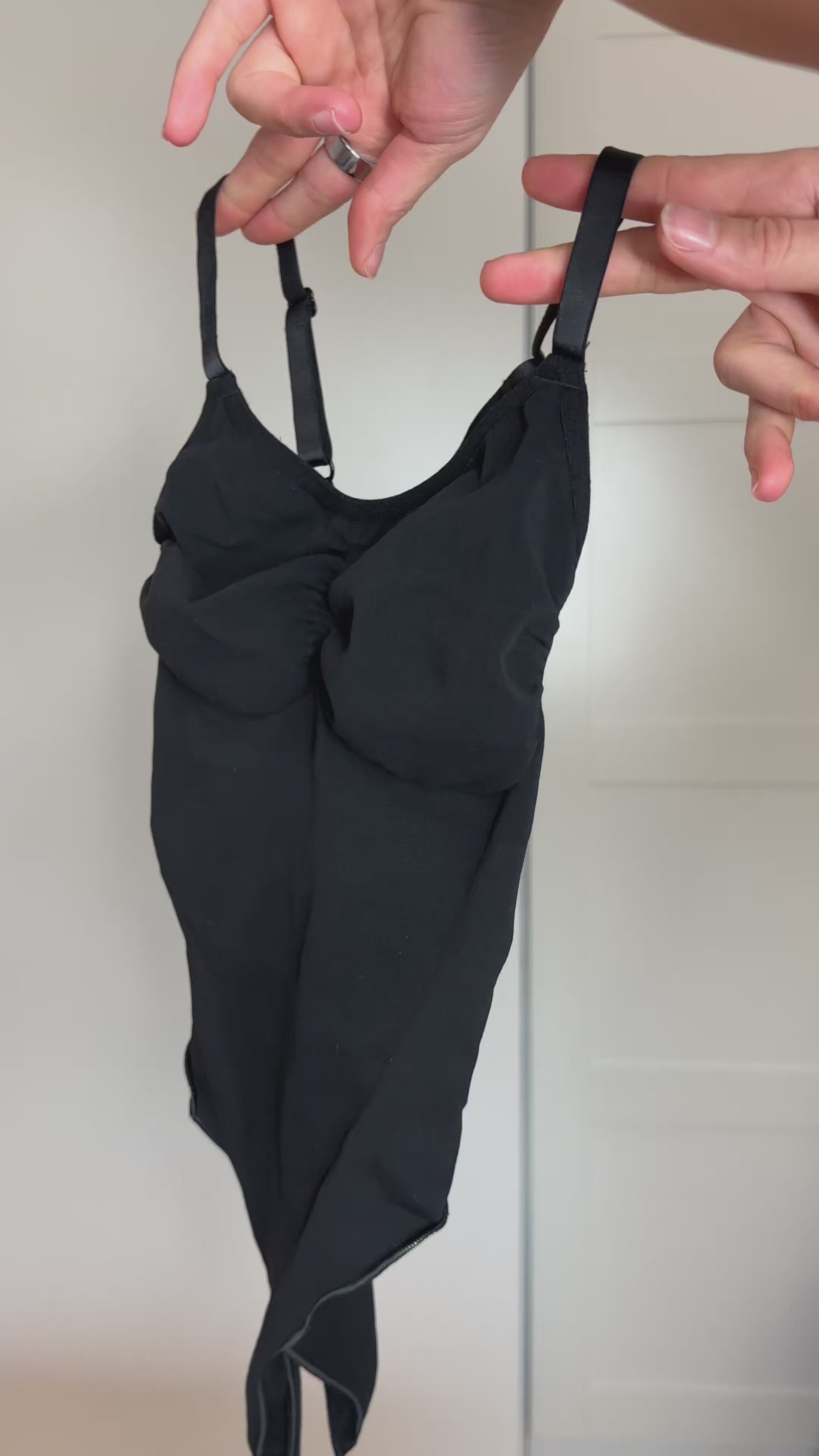 When putting on shapewear, always step into the garment from the bottom — this also applies to briefs. Sit down if needed and start by placing your feet into the garment, one leg at a time. Gently pull it up over your knees and thighs, then carefully adjust it into place. Once on, smooth and adjust around the waist, stomach, and hips to ensure optimal comfort and support.